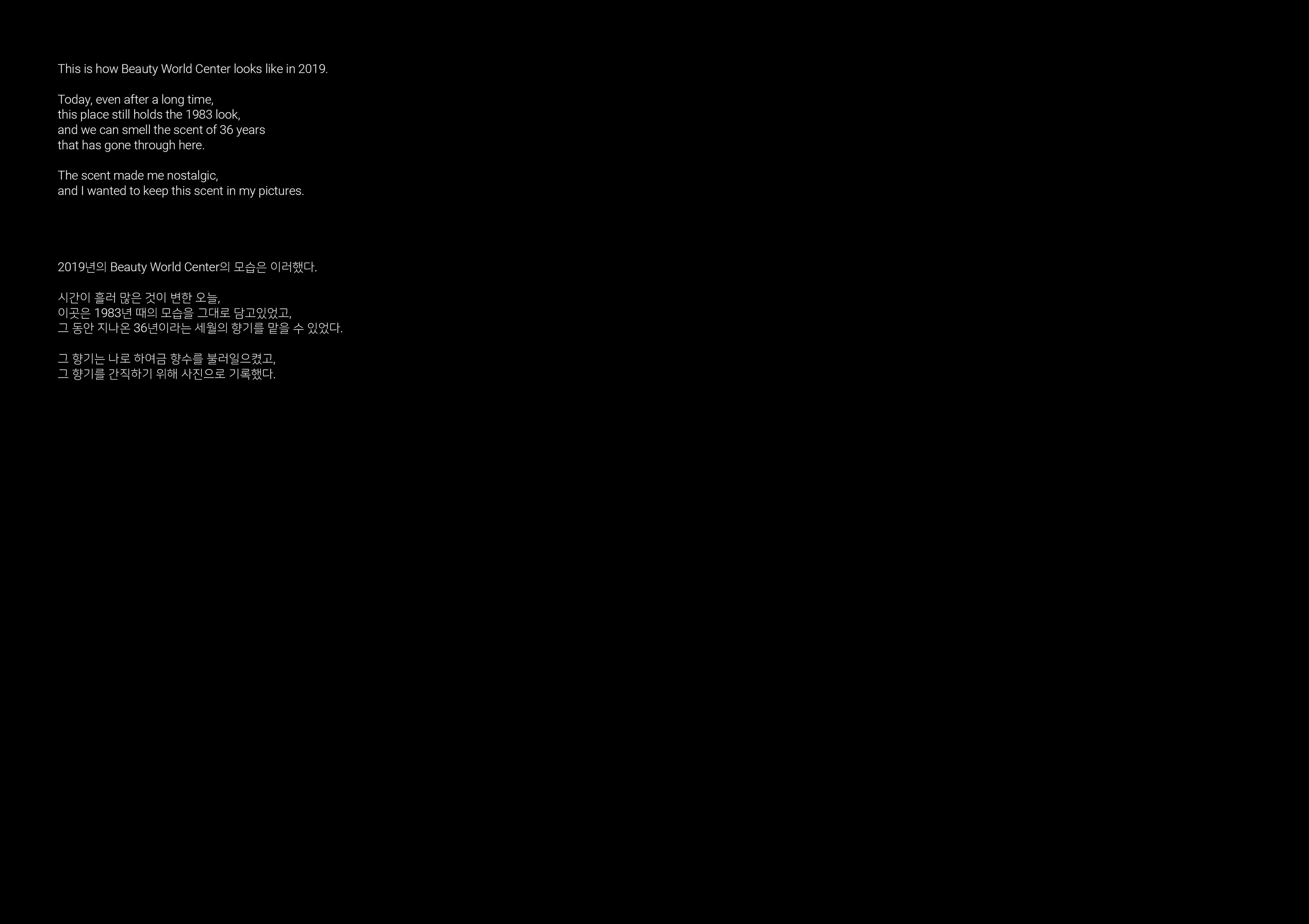 The zine is a combination of the photos that were taken using a film camera at Beauty World Plaza in Singapore. Even though it has been decades since 1983, the place still retained the scene of the old days. Such scenery offered the sentiment from that last 38 years. The scene enkindled nostalgia in me, which I kept within a piece of photography.